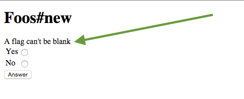 Back to the browser everything seemed fine. I could submit both Yes and No values but there was a problem when I was trying to submit the form without selecting a value.